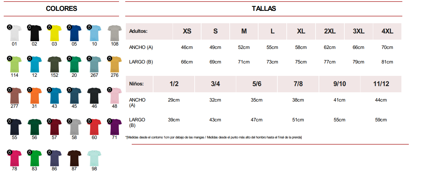 Las camisetas pueden ser diferente tallas y colores pero todas con el mismo diseño por lote.